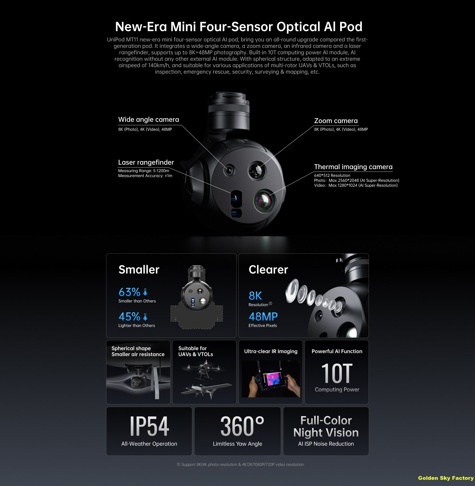 UniPod MT11 Multirotor Mini Four-sensor AI Gimbal Pod