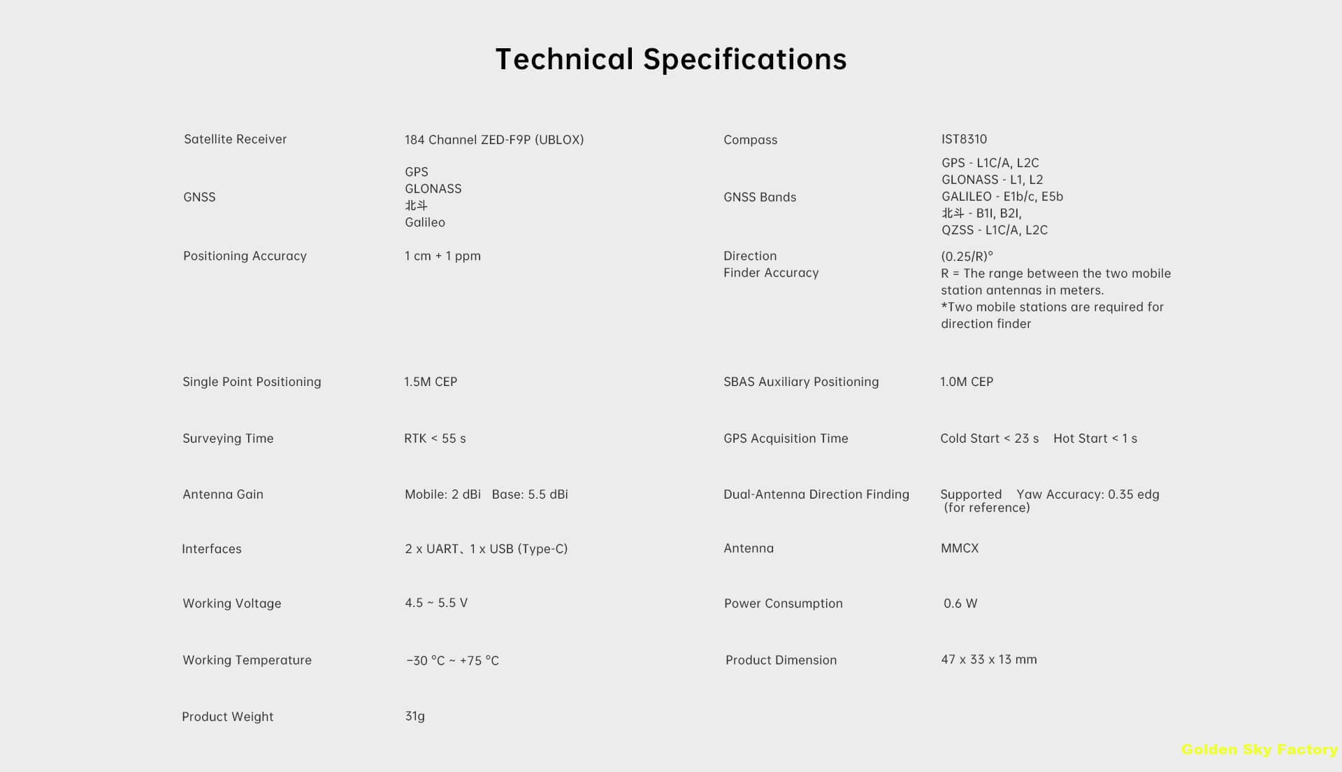 GeoAccurate F9P RTK Rover Positioning Module